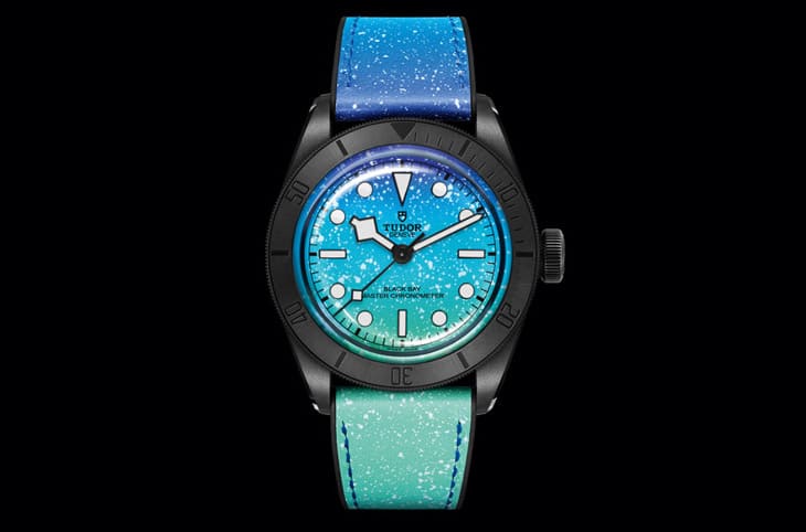 ▲應該是以Black Bay Ceramic為基礎的VCARB車手專用錶,從錶帶到面盤都挹注車隊為了拉斯維加斯大獎賽精心設計的藍綠漸層奇幻色彩。