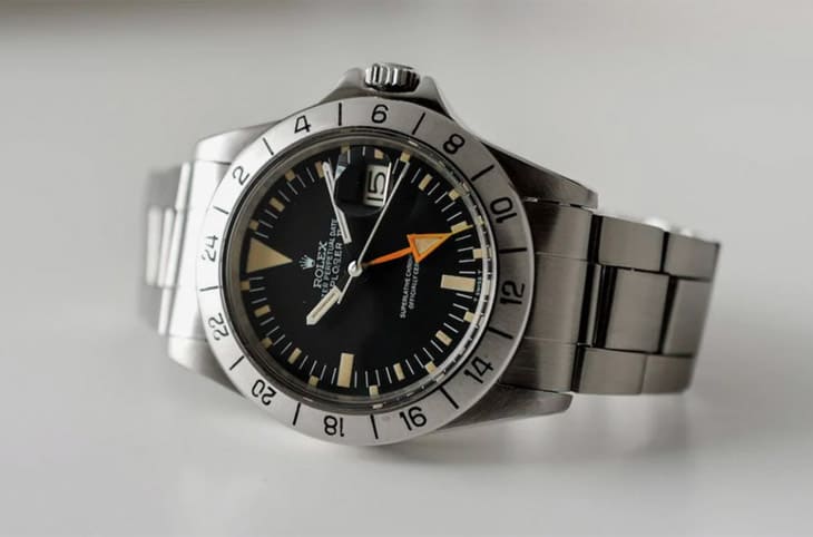 專家推薦的第二款型號是探二1655,這款作品於1971年首度問世,它和探一雖是系出同源,但功能性和設計各有特色,例如探二多了兩地時間功能,錶圈上有24小時刻度等,這在探險家可能長期置身在洞穴中的情況下,的確有它的進階實用目的。Explorer II 1655的錶徑增加至40mm,面盤12點方向有個超大的倒三角形時標、3點方向設有放大日期顯示,而在面盤邊緣分鐘刻度外面一層還貼心加上夜光刻度,那是用來輔助顯示錶圈24小時刻度中的奇數小時,讓人可以在黑暗中清楚判別。探二1655後來持續生產到1988年,距離現在已經相隔許久,因此就算過去兩年多高級手錶的二級市場行情遇到撞牆期,但是Explorer II 1655還是能穩穩的停在20,000~25,000歐元水準,狀況好還有盒單的話,喊價還能往上翻兩番到45,000~50,000歐元,未來這款錶還是有一定的增值空間。