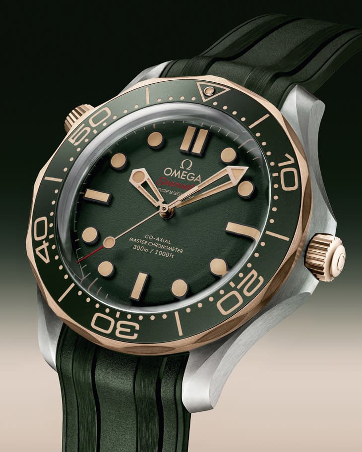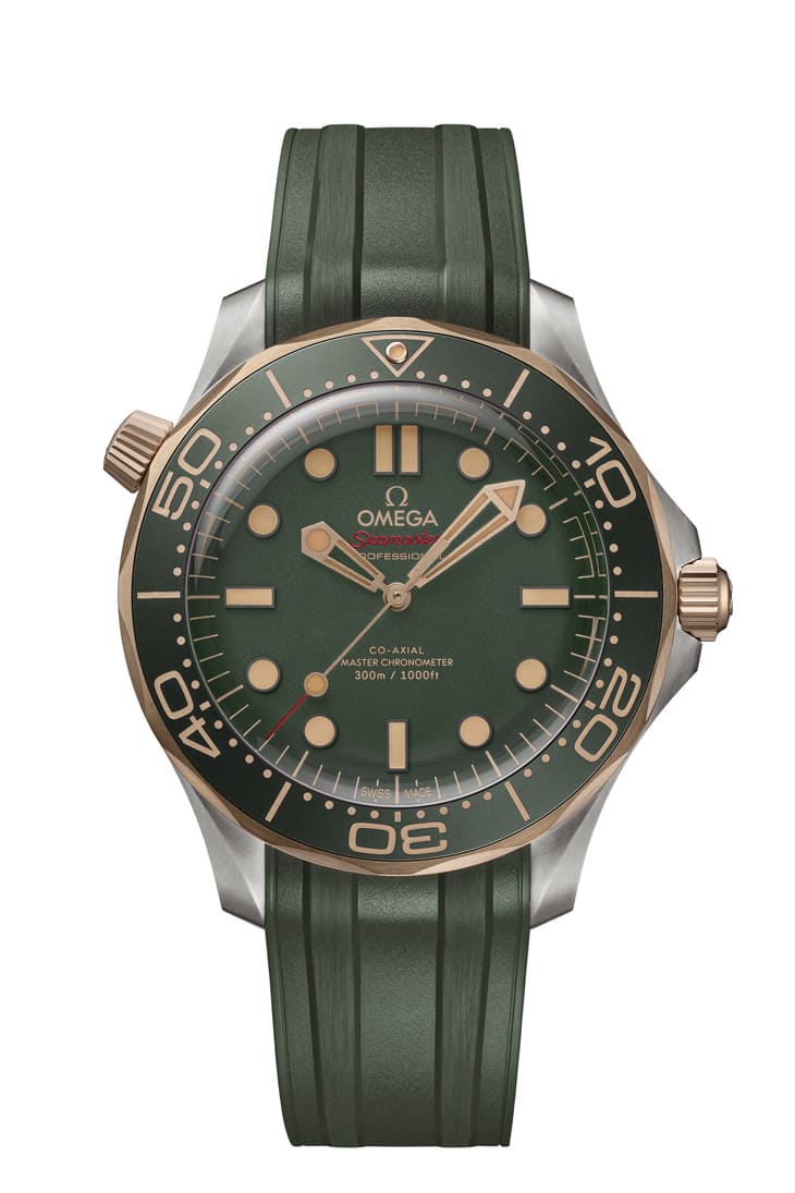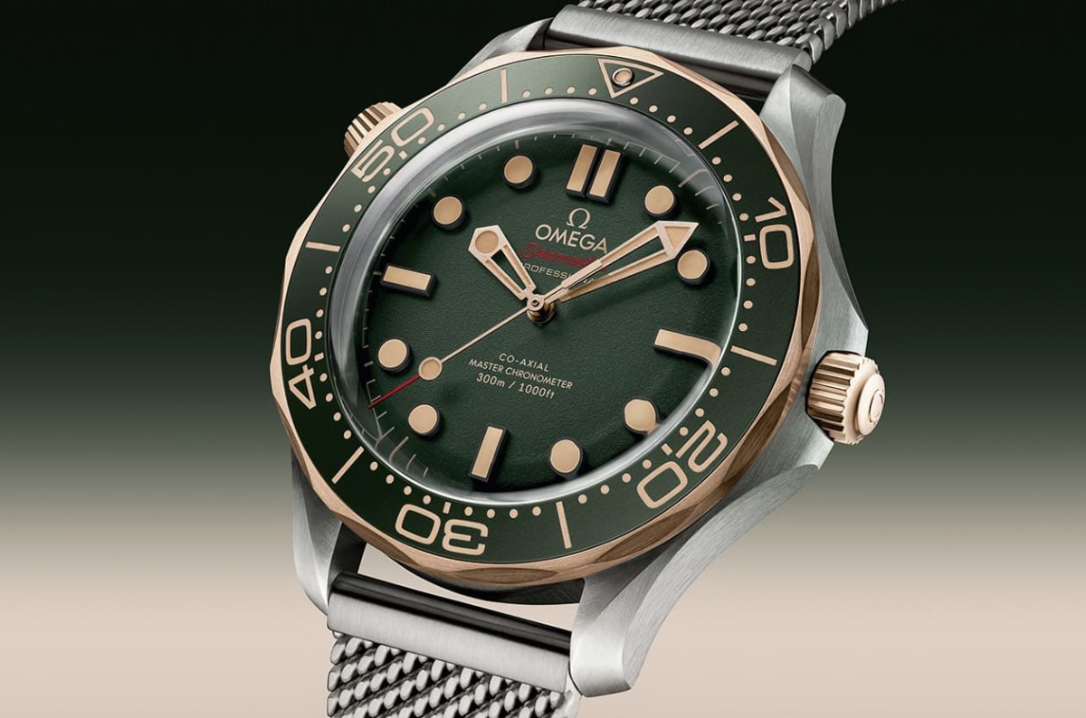 OMEGA先前才推出了新款的海馬潛水300米,也就是將「龐德電影60週年紀念款(藍面)」改成黑面,並新增另一款鋼殼配鈦金屬錶圈、不鏽鋼拉絲處理面盤的款式,結果還不到一個月的時間,歐米茄又再接再厲追加一款同系列新作,這次手錶又改用鈦金屬與青銅金材質組合,搭配話題顏色面盤,衍生出同中求異的新奇感。