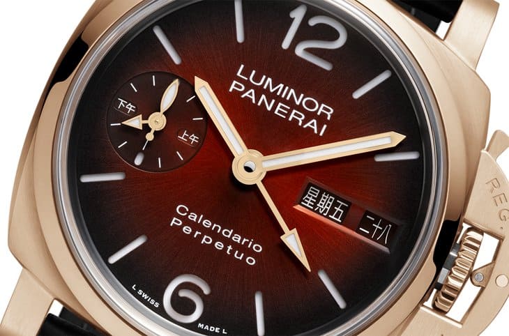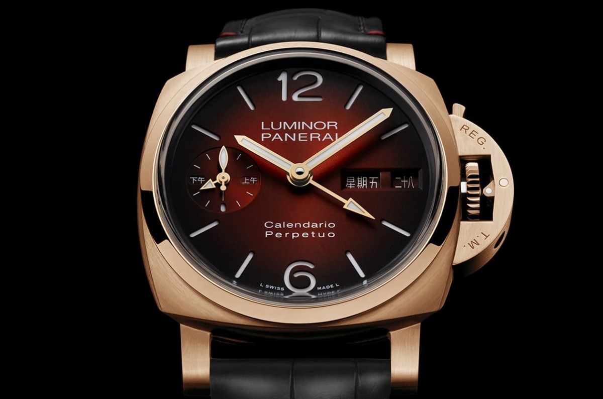 ▲沛納海Luminor Perpetual Calendar新增Goldtech™紅金款式,面盤的紅色與錶殼呼應,用意在致敬大中華區農曆新年喜慶。