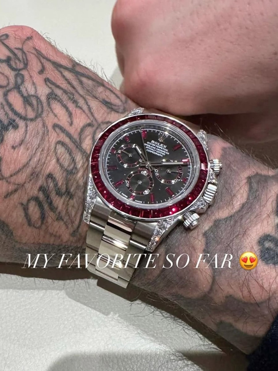 ▲貝克漢曾在2023日內瓦鐘錶與奇蹟錶展搶先試戴勞力士的Daytona "Ruby" 126599TRU,如今手錶也成了他的珍愛收藏之一。Source:Instagram @insaneluxurylife