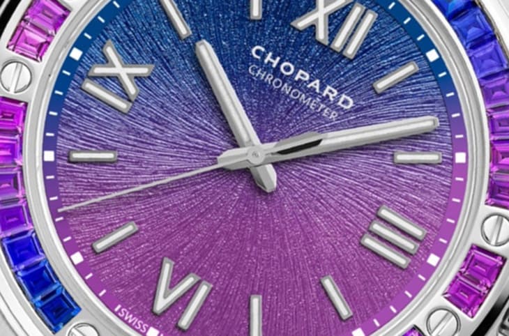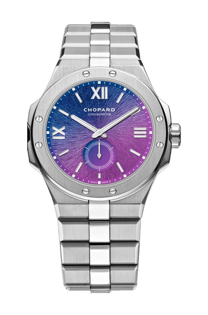▲CHOPARD x Art In Time的Alpine Eagle特色在於面盤改成「Chameleon變色龍」設計,帶有藍色到紫色的漸變效果。