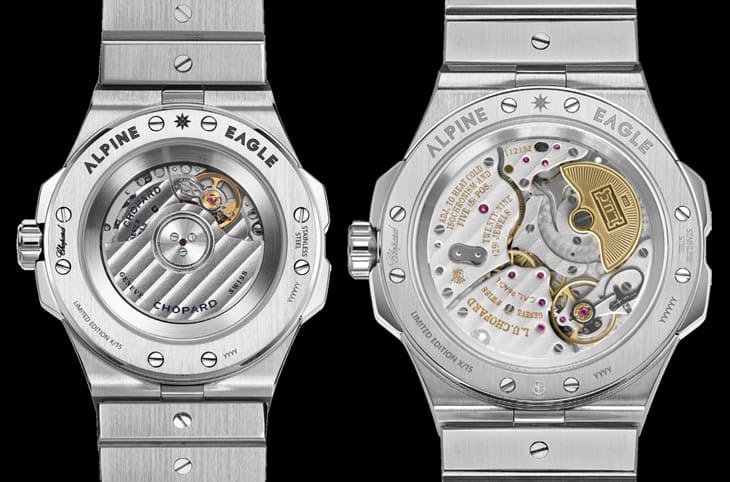 ▲兩種尺寸的Alpine Eagle分別搭載09.01-C自動機芯(左)和L.U.C 96.40-L自動機芯(右),都是獲得COSC認證的作品。