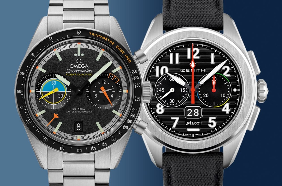近期歐米茄無預警推出了之前傳聞中的神祕飛行錶Speedmaster Pilot,用製作登月錶的豐富經驗再次飛向天空,由此創作出的超霸飛行錶先天上就讓人很有信心,加上這款錶在正式市售之前聽說是為了特定單位製作的軍用錶,因此應用在日常生活更是能夠稱職勝任。然而在錶壇提到"Pilot",絕對不會漏掉唯一能在面盤放上Pilot這個字樣的ZENITH(先註冊先贏),他們家前陣子也新推出了重新設計的Pilot系列,以更為粗獷現代的風格吸引錶迷注意。兩款自動上鍊、帶有計時功能的飛行錶設計上各有千秋,但都符合飛行員在執行任務時的實用需求,究竟它們有哪些特色、規格上又有什麼亮點?本次就要來一探究竟。