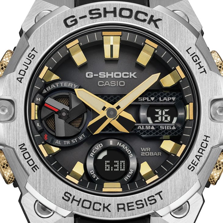 外型設計的巧思微調不影響手錶具備的強大功能性,它握擁太陽能充電系統與Mobile Link手機連結功能,既能促使手錶保有長效動能,也能透過CASIO WATCHES App自動調整到正確時間,在走時精準度方面與其耐衝擊保護性互相輝映,另外G-SHOCK手錶常見的功能如萬年曆、計時碼錶以及鬧鈴等,GST-B400CX也通通備齊,讓人在新的一年可以獲得滿滿能量因應各種生活環境的挑戰與變化。