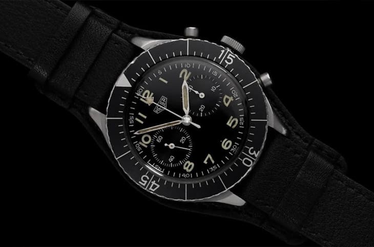 這款錶的造型遠看常讓人以為它是潛水錶,因為它有厚厚的錶圈,看起來就像潛水錶的風格,但是實際上它既不是潛水錶,也不是出自泰格豪雅著名的賽車錶,它其實是TAG HEUER於1955年時為了德國飛行員所開發,這款錶搭載Valjoux 230飛返計時機芯、擁有43mm的碩大尺寸,在當時來說是有點大過頭的設計,但因為使用需求是在駕駛飛機的情境,所以這樣的錶徑反而合理,也剛好放到現代佩戴也很合適。Bundeswehr Flyback 1550 SG在Chrono24架上的選擇相對少,大概20來只而已,價格和前面提到的百年靈、歐米茄等作品差不多,以稀有程度來說,泰格豪雅這只佔了點上風。