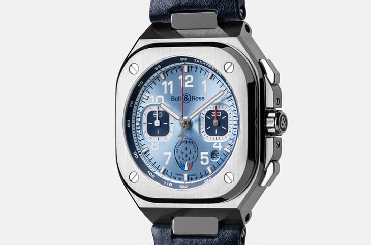 BELL & ROSS再度與法國巡邏兵飛行表演隊(Patrouille de France)合作,第四度創作雙方聯名手錶,新作BR-05 Chrono Patrouille de France全球限量500只,有別於前3款聯名作品都是以BR-03系列為基礎,2025年改由風格摩登的BR-05演繹令人耳目一新,也藉此向法國巡邏兵飛行表演隊的精準度和性能精神致敬。
