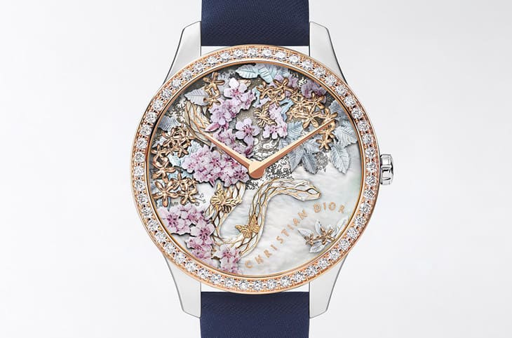 在傳統大中華文化中,「蛇」被視為智慧、重生和轉化的象徵。蛇年出生的人通常被認為具有敏銳的直覺、舉止優雅和堅定的決心。 Dior Grand Soir蛇年限量錶以其複合工藝呈現的蛇形圖案,完美地捕捉了蛇年的精神,同時面盤整體畫面具有的美感,更是能夠彰顯DIOR的工藝水準以及他們對設計細節的要求。