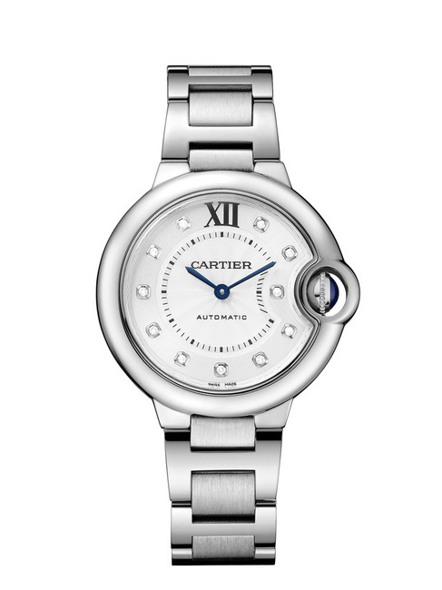 ▲ 卡地亚Ballon Bleu de Cartier手表精钢表壳与链带,搭载自动上链机芯,面盘镶嵌11颗钻石。建议价格 NTD5,000元