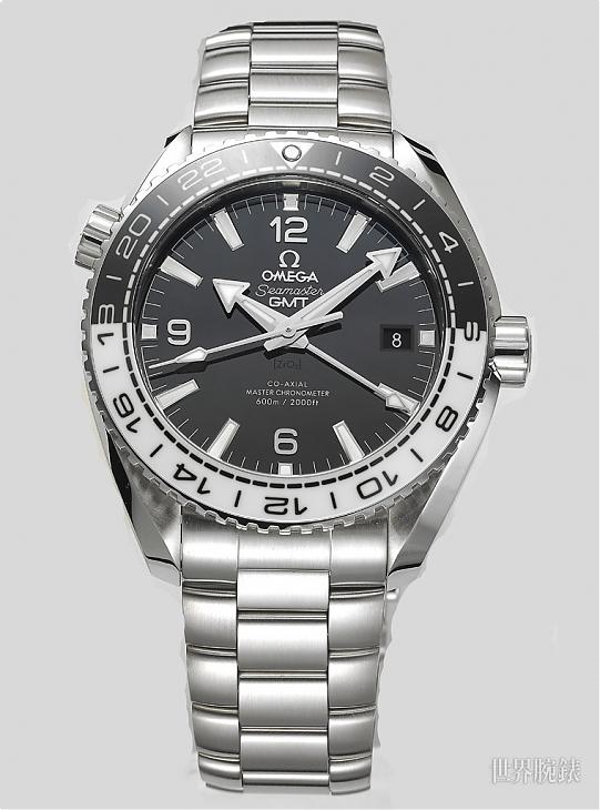 回过头来看看表款全体。这款的细部样式套用的是2016年式Planet Ocean的新规设计,其中像是表圈内缘的虚线、面盘外圈连线成「山」字型的刻度都是新的。表圈的旋转机能由于是对应到GMT所以是双向旋转,再加上上面的数字刻度是24小时制的时标,因此不太能当作潜水的计时表圈来使用(但防水深度仍有600米)。