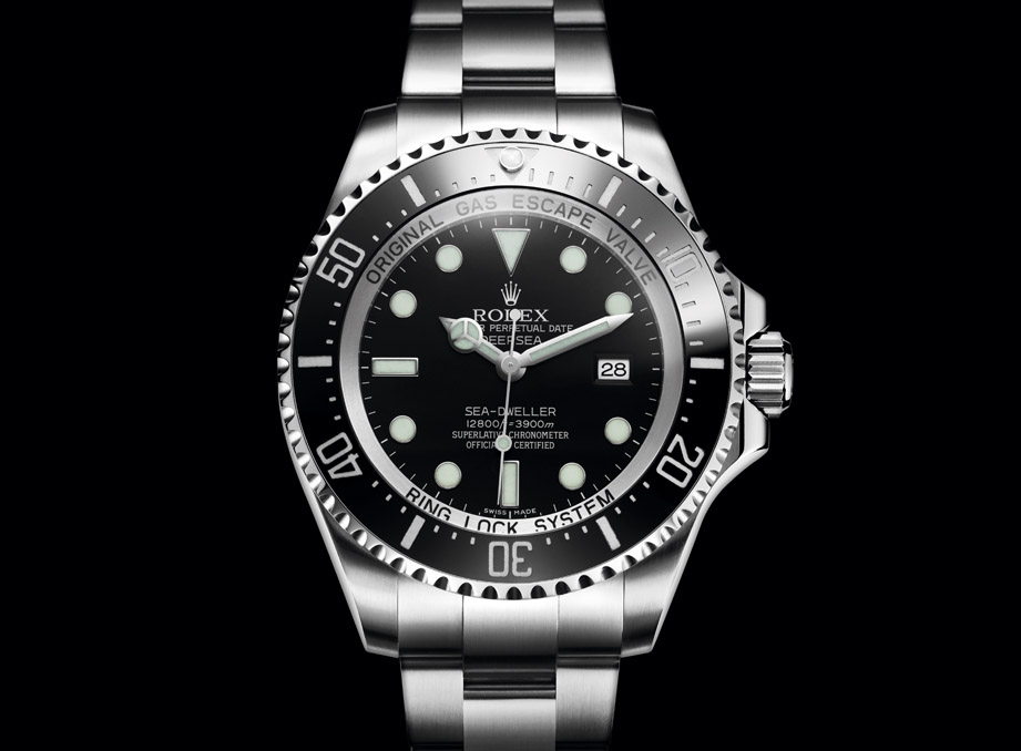 Oyster Perpetual Rolex Deepsea 防水深達3,900米 (12,800 呎),是勞力士潛水錶家族近代才加入的新成員,證明品牌在防水方面的至高地位。Rolex Deepsea於2008年問世,錶殼直徑44毫米,超越專業潛水員對手錶在堅固、精準和可靠等方面的嚴格要求,同時還保留了Oyster Perpetual系列手錶的美學元素和基本特徵。 作為品牌新一代潛水錶,Rolex Deepsea受惠於勞力士獨家創新技術,例如Ringlock 裝置。新型專利錶 殼內裝有高效能氮合金壓縮環,作為手錶支架;錶殼底蓋以5級鈦合金製成;鏡面為5.5毫米厚的藍寶石水晶。因此手錶能承受3,900米深的水壓,相當於鏡面承受3噸的壓力。Rolex Deepsea以極難腐蝕的904L鋼製成,配備單向旋轉外圈及Cerachrom 陶質字圈,指針和時標都塗有 Chromalight夜光物料,可以持久發光。