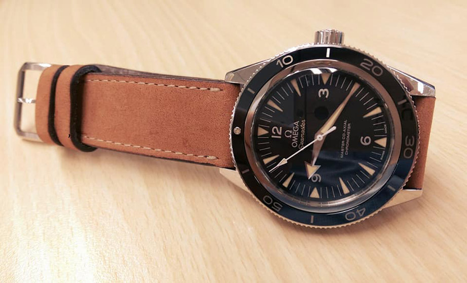 最近看到著名的手工錶帶店有新出這款麂皮的錶帶,我迫不及待將我喜愛的日常用錶拿去手工訂做。