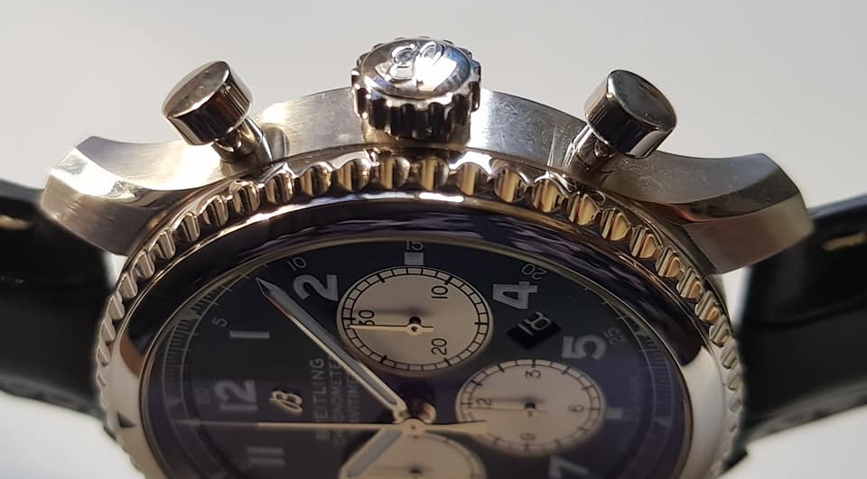 ▲圆形按把,经典飞行表重现(在古董计时表中,圆形按把比方形按把更加有味道,简单的说有时候行情会比较好)。