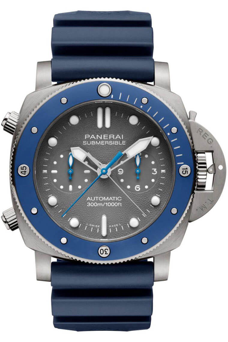 PAM00982/钛金属材质/P.9100自动上链机芯/时、分、小秒显示/飞返计时码表功能/蓝宝石水晶镜面/防水300米/表径47mm/参考价:NT$ 597,000