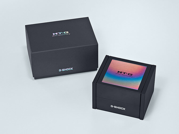 ▲2019是MT-G系列創立20週年,G-SHOCK特別推出MT-G系列20週年的限量紀念版,錶款的包裝運用彩虹離子電鍍於外盒上,突顯紀念版的收藏價值。
