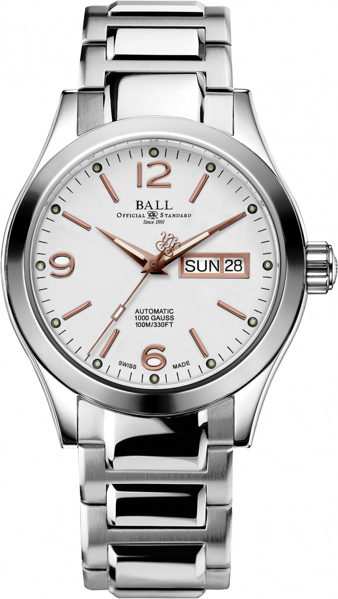 904L不鏽鋼材質/ BALL RR 1102自動上鍊機芯/時、分、秒、日期顯示/藍寶石水晶鏡面/防水100米/錶徑40mm/參考價:NT$ 45,600(鍊帶)、NT$ 42,600(皮帶)