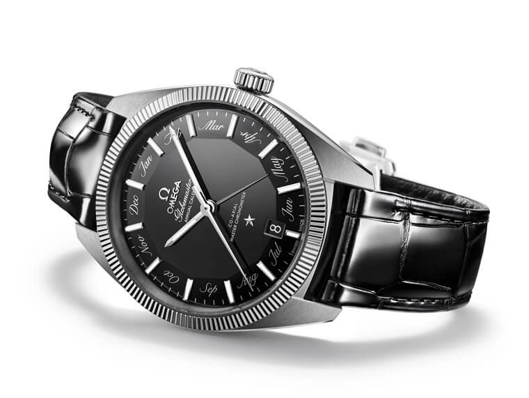 雖然歐米茄不是用指針顯示月份的第一人,過去其他品牌也有出現過這樣的設計,不過OMEGA跟他們最大的不同在於其他的品牌往往都是直接用時標權充月份,但星座系列年曆錶反而是利用時標跟時標之間的空間印上草寫的月份字樣,用時標借代月份的好處在於直覺,5點鐘就是五月,不需要多加思索,因此其他品牌採用這種設計的手錶都沒有在時標旁另行標注月份,相對地OMEGA的做法如果沒有額外印上月份名稱就比較容易造成判讀時的混淆,可是一旦習慣了這樣的顯時模式,加上月份指針又都是停在時標與時標中間,其實要造成誤判的情況也不容易。