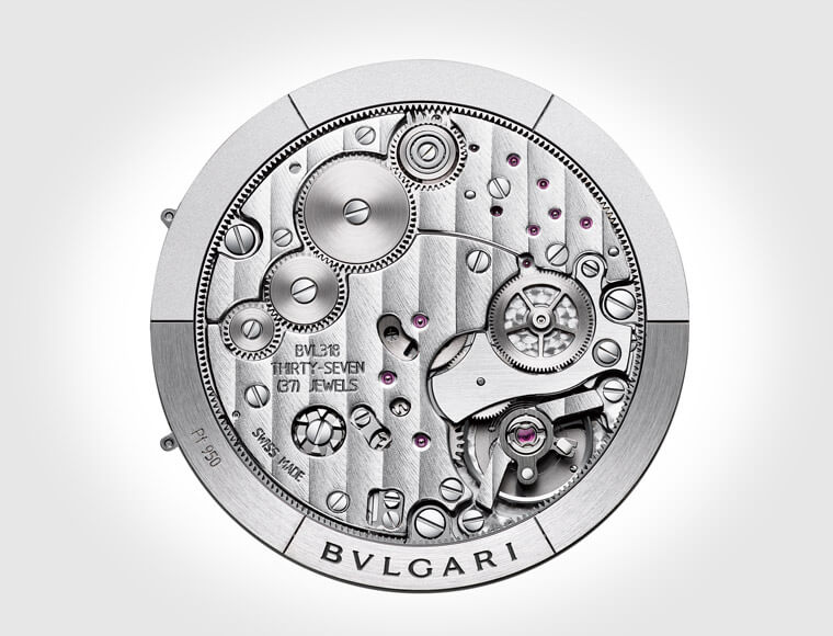 BVL 318 3.3mm的薄度遠遠超越了FP1185的5.4mm,不過即便不考慮製錶業在這三十年間的進步,筆者還是認為這種比較方式未盡公允,因為FP1185使用的是全輻的自動盤和垂直離合機制,相對地BVL 318則是環型自動盤和水平離合,這些先天上的差異讓FP1185幾乎從一開始就毫無勝算,甚至可以說它在這樣的前提下還有辦法做出那麼薄的機芯反而是另一種本事。當然在這種地方追求公平殊屬無謂,既然目的是要做出最薄的計時機芯自然應該選擇對這點最有利的機構,寶格麗在這裡原本就贏得光明正大。