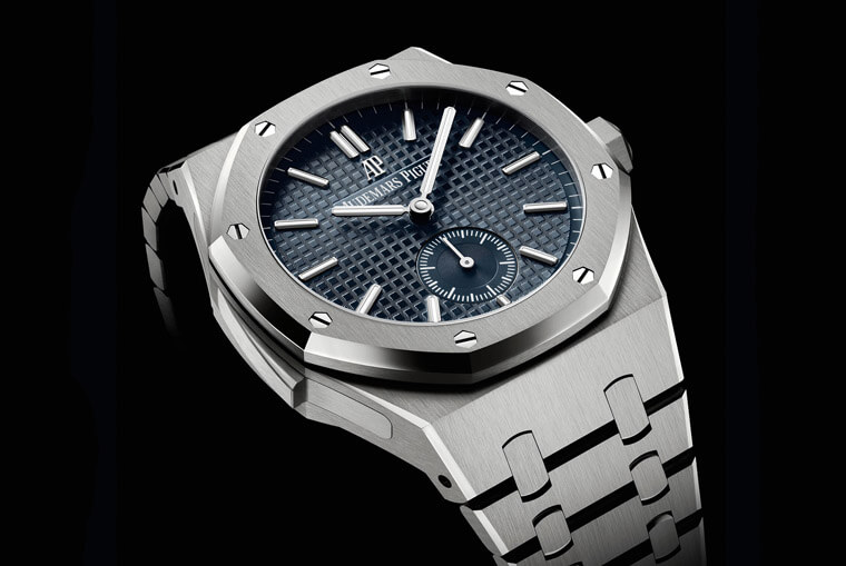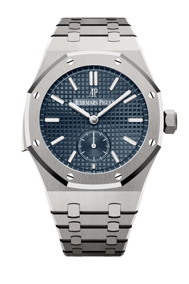 這款錶的錶殼直徑為42mm、錶殼厚度因為超問錶機芯零件相對複雜的關係,所以有14mm的份量,它的造型維持了皇家橡樹的一貫特色,例如八角造型錶圈、外露的固定螺絲等等,至於面盤同樣有Grande Tapisserie,小秒盤位在6點方向,啟動三問功能時則需依靠錶殼左側的撥桿,屬於傳統保險的設計。