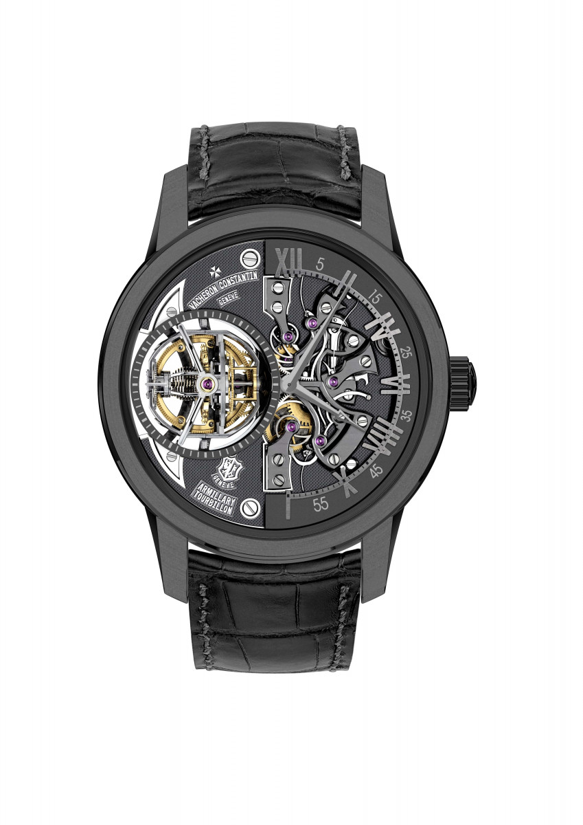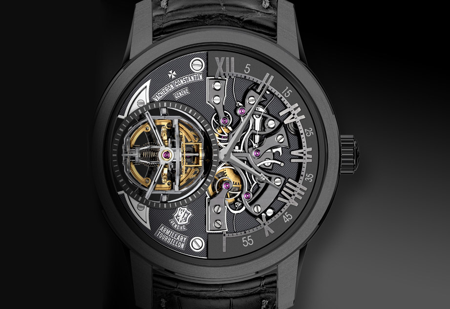 在拱形藍寶石水晶錶鏡下,渾天儀式陀飛輪的結構清晰可見:兩個嵌模式框架圍繞著兩個不同的軸心,以每60秒旋轉一周的速度持續轉動,構成一個不停旋轉的球體結構。精密的陀飛輪裝置 中還搭載了矽質擒縱機構,以及瑞士製錶大師Jacques-Frédéric Houriet於1814年發明的球形游絲。 這一游絲末端未有採用曲線設計,使得陀飛輪機構可以保持近乎完美的同心節奏,實現更佳的等時性。